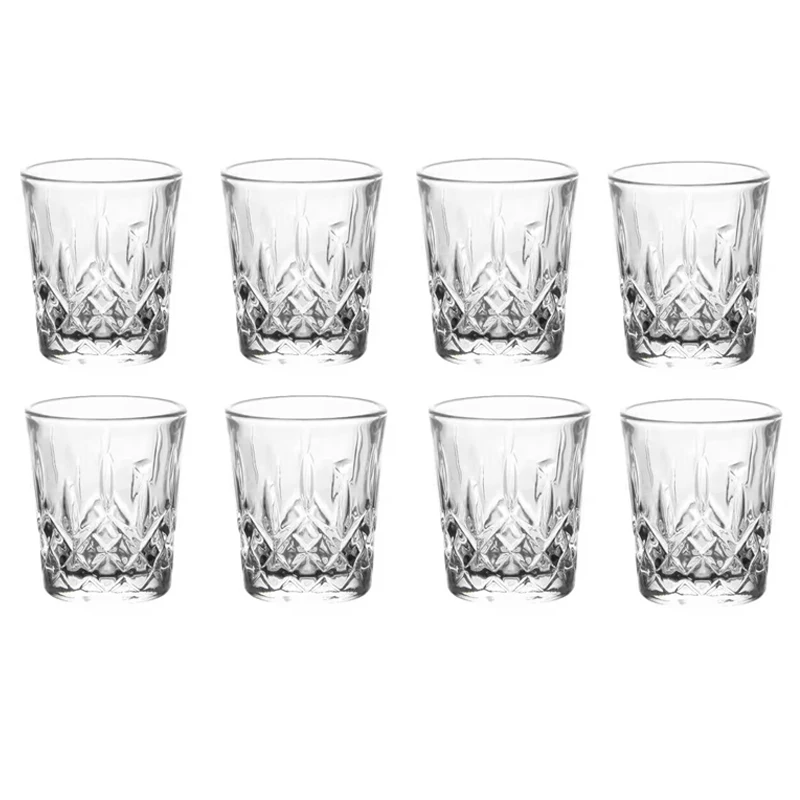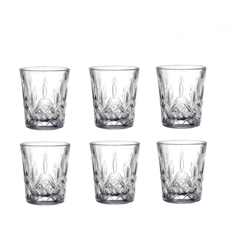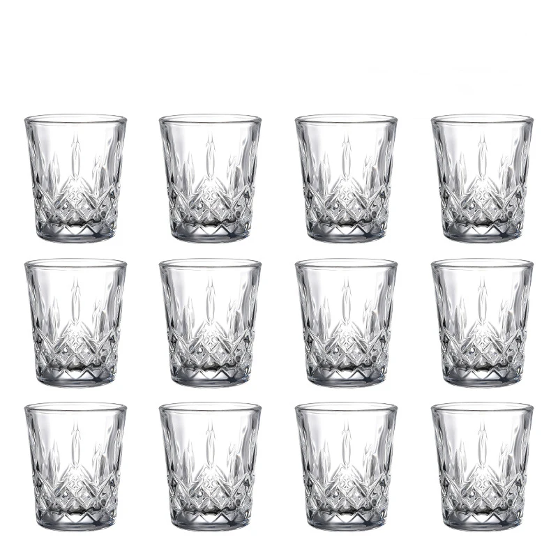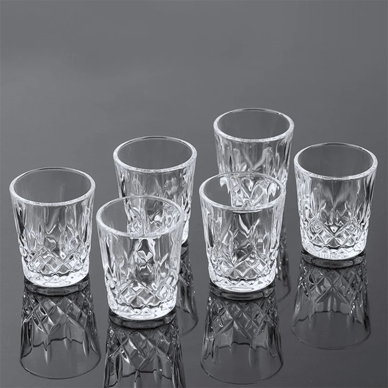 12pcs/8pcs/6pcs/4pcs/2pcs Embossed Glass 50ml Spirits Cups Engraved Tea Drinking Baijiu Cup Water Glass Small Capacity Wine Cup