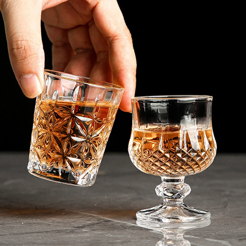 2pcs Set Glassware Cocktails Bullet Cup Baijiu Glasses Bar High Quality Wine Glasses Set Strong Liquor Cup Mini Shot Glass Set