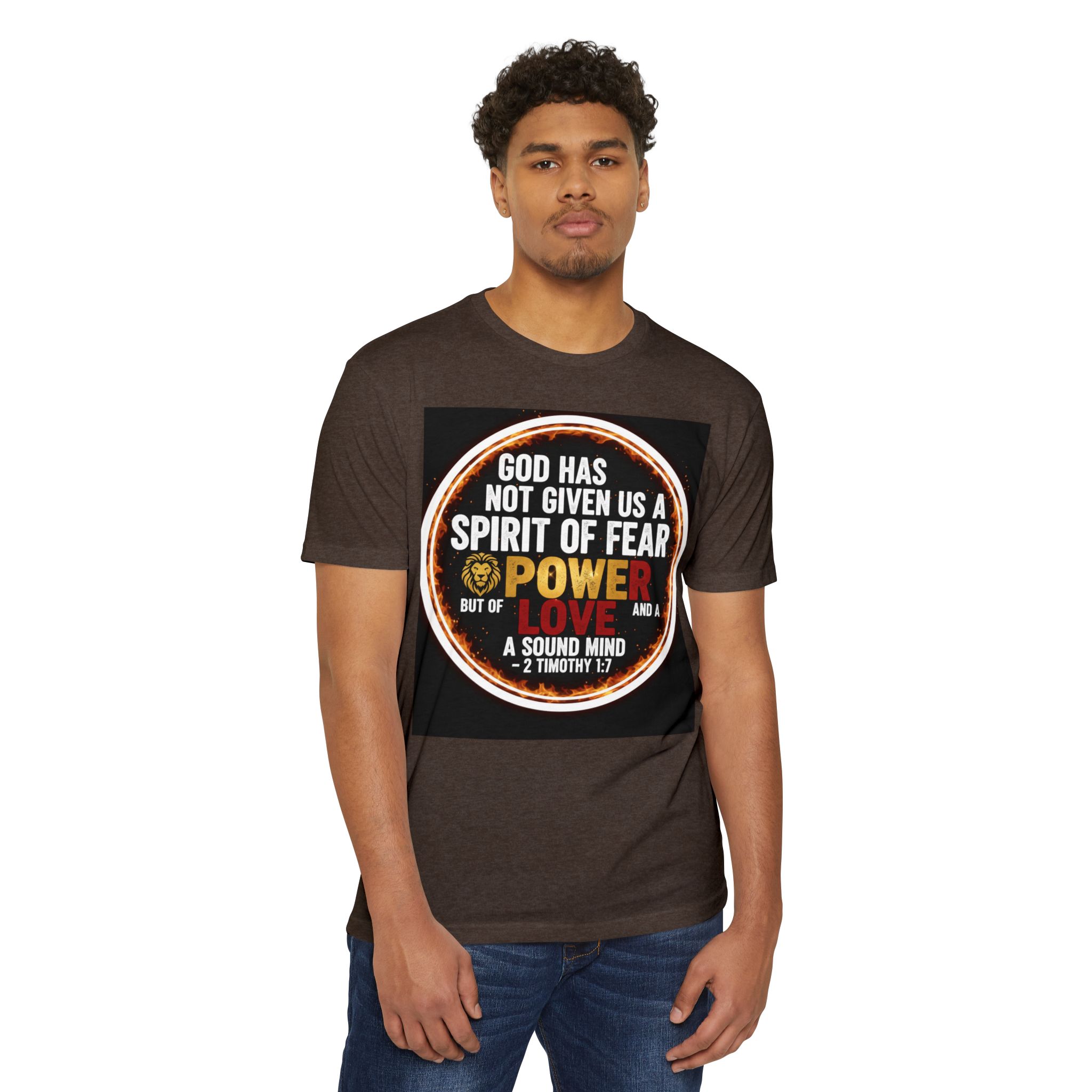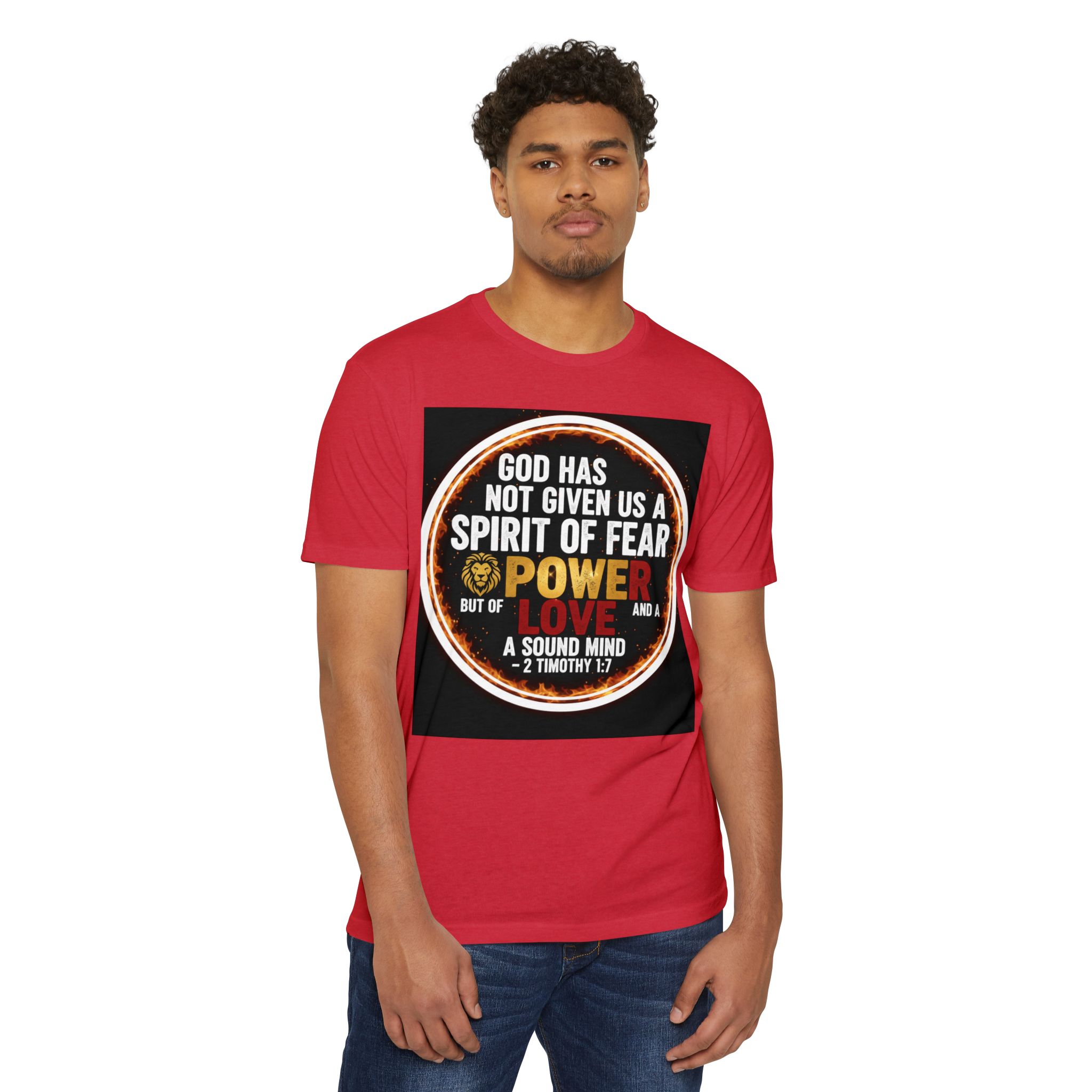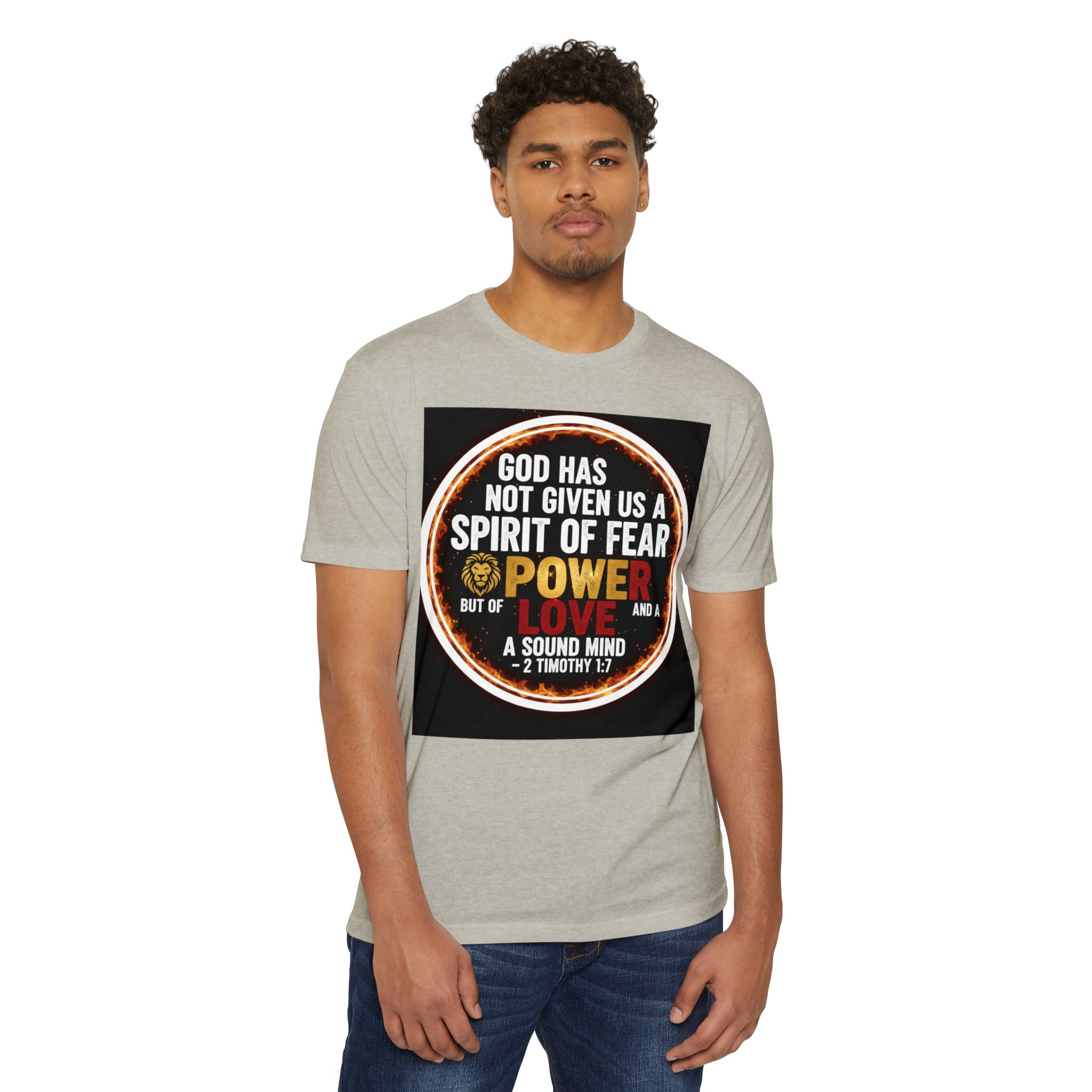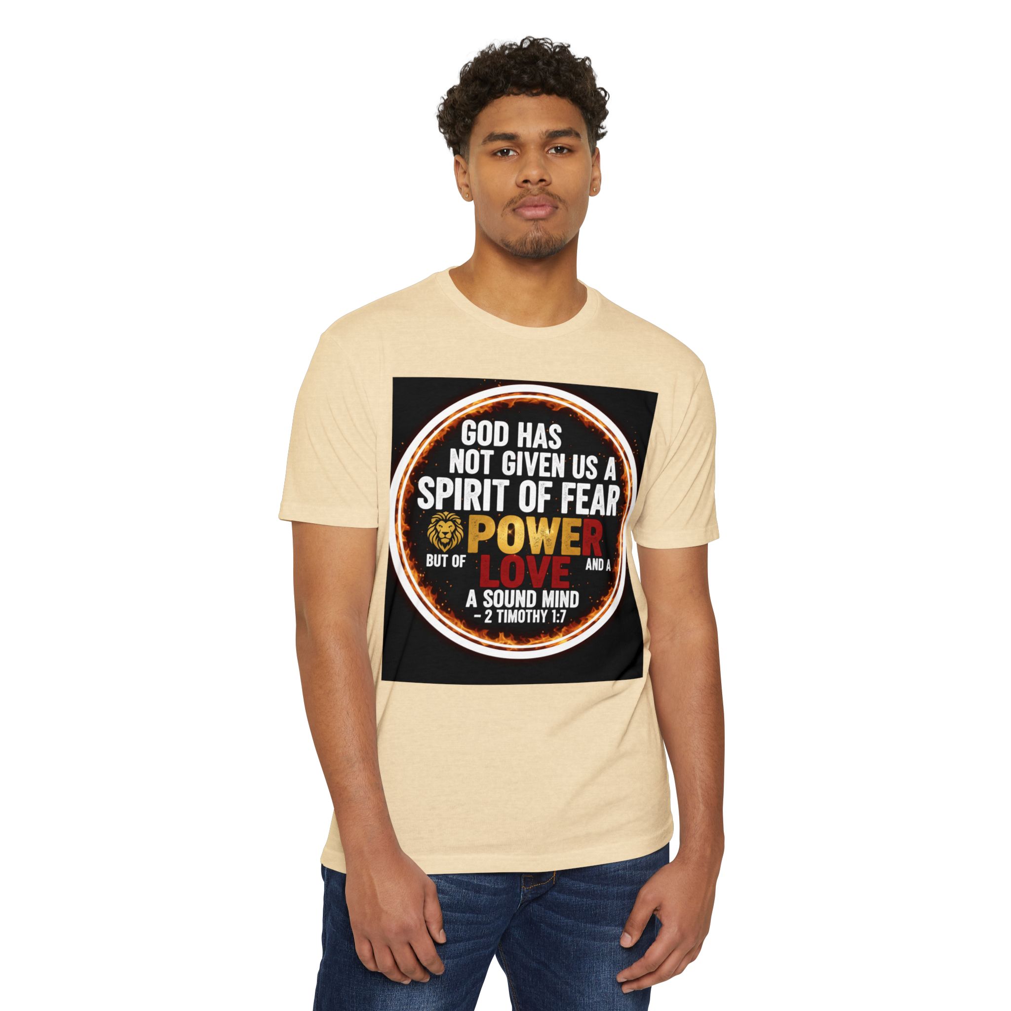 This lightweight classic-fit tee carries a quiet confidence — soft to the touch and designed to be worn every day. The front print places a bold, faith-centered message inside a warm, circular frame, blending gold and red accents that catch the eye without shouting. Wear it to small group meetings, volunteer days, or on an ordinary morning when you need a steadying reminder. The fabric drapes naturally, the ribbed collar keeps its shape, and the tear-away label removes irritation so nothing distracts from the message you carry.