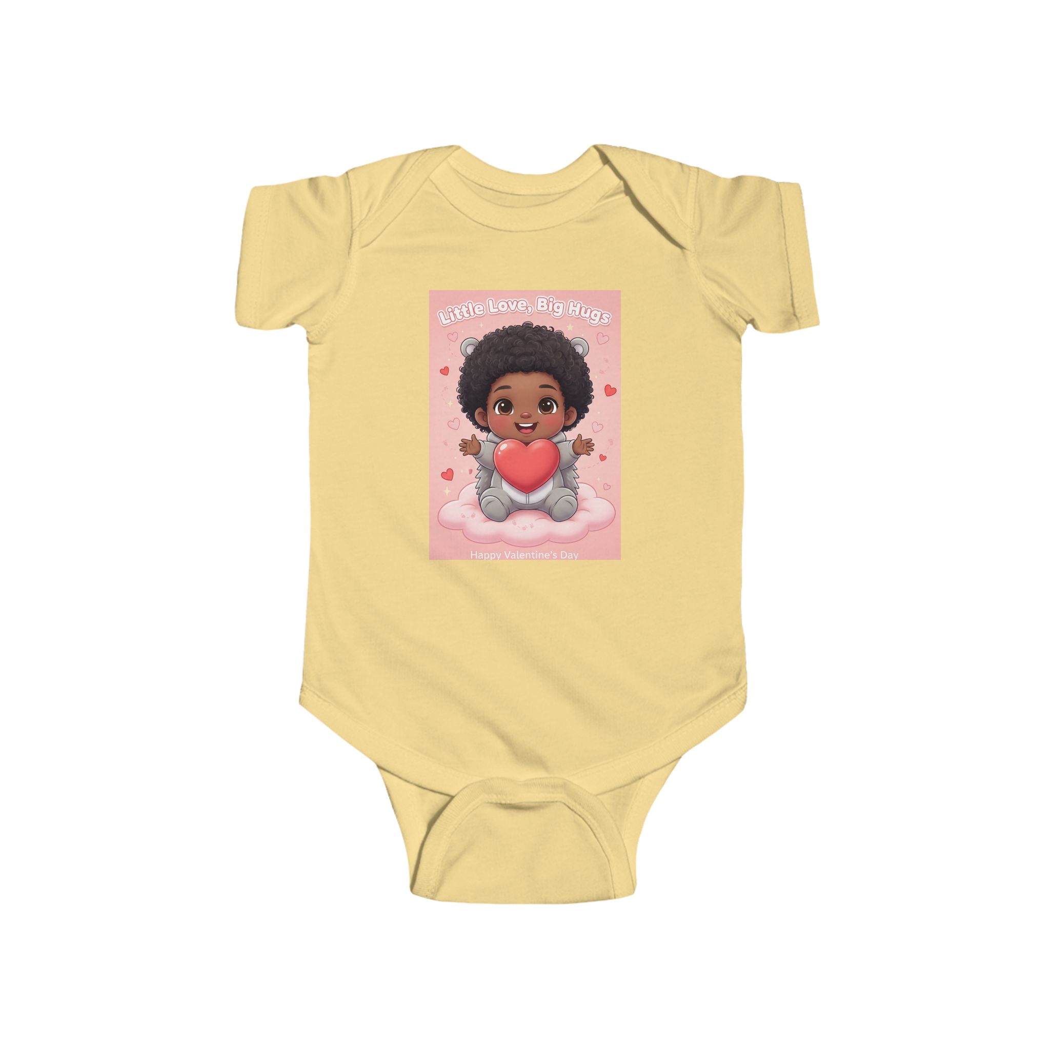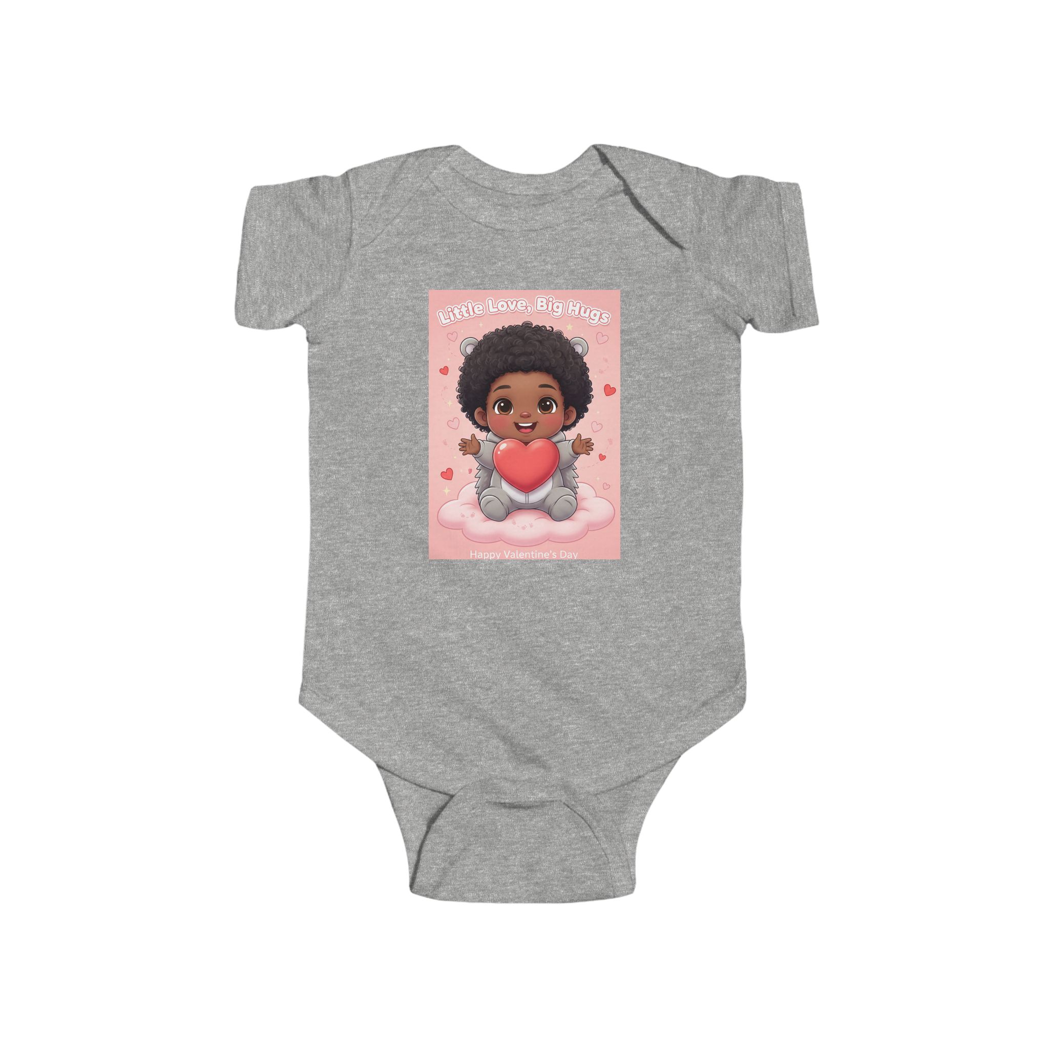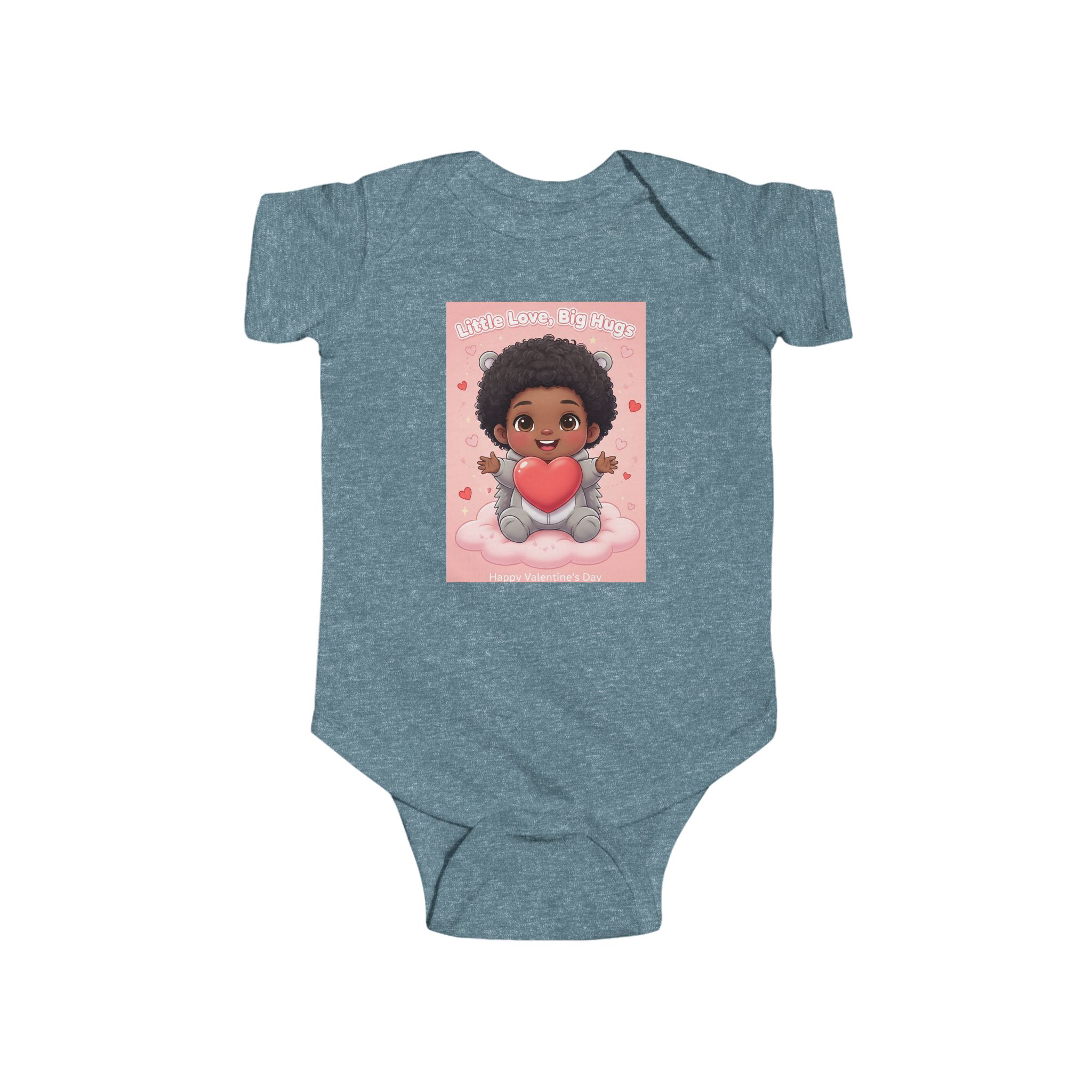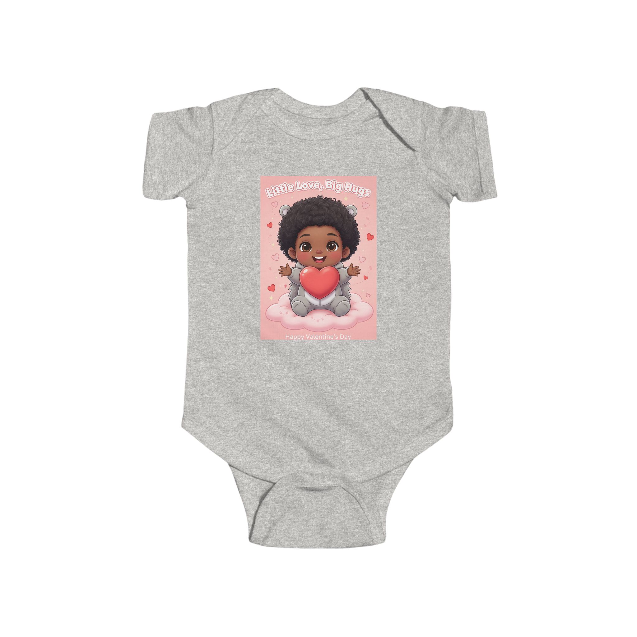 Soft and sweet — this infant bodysuit wraps tiny days in gentle comfort and playful charm. The lightweight, smooth jersey feels soft against delicate skin while the ribbed neck and side seams keep its shape through wiggles and washes. A cheerful print of a smiling baby holding a heart brings warmth to nap time and family photos. Snaps at the cross closure make diaper changes quick and quiet, and the tear-away label keeps things itch-free for sensitive skin. Made from combed ringspun cotton with REACH certification, it’s crafted to be worn, loved, and passed along.