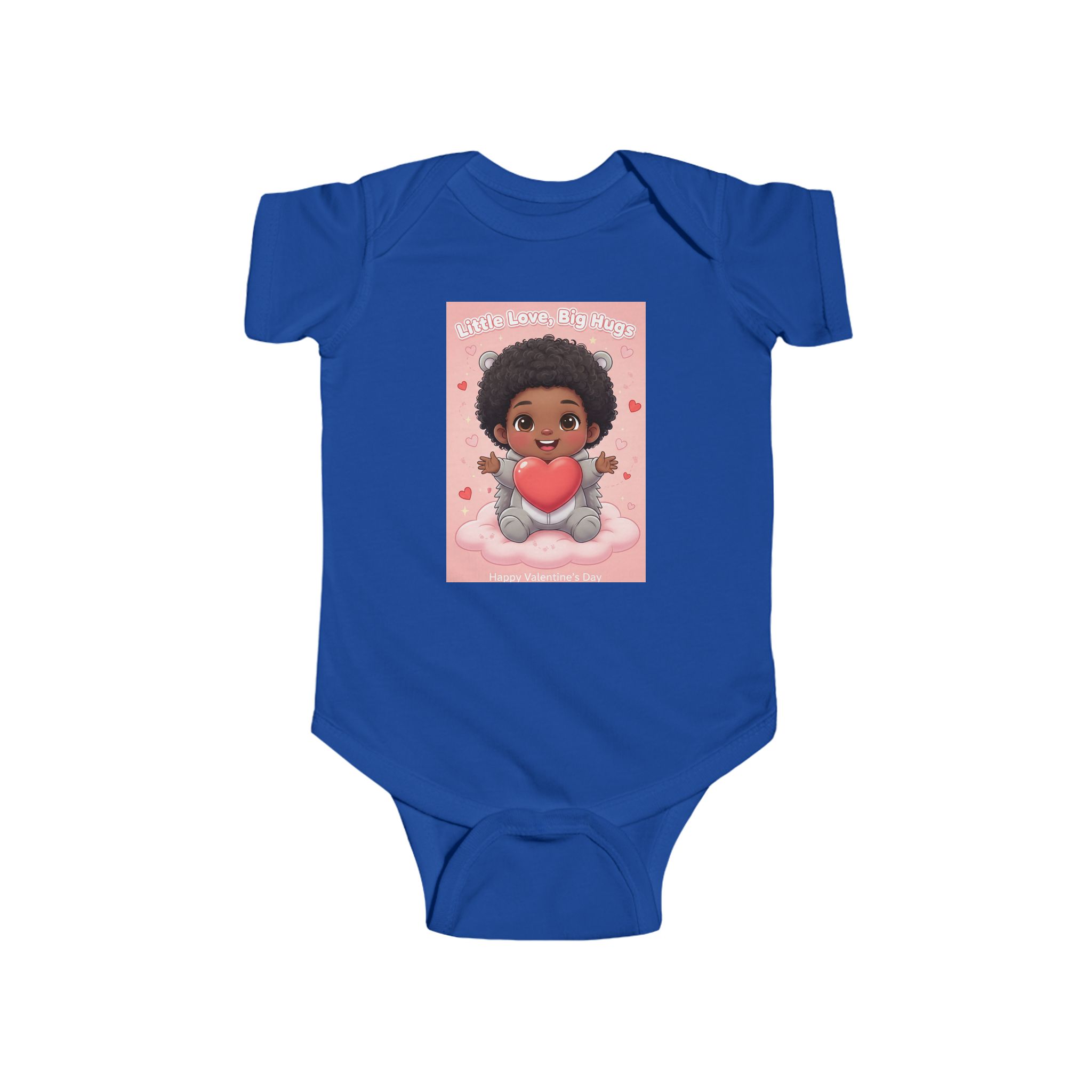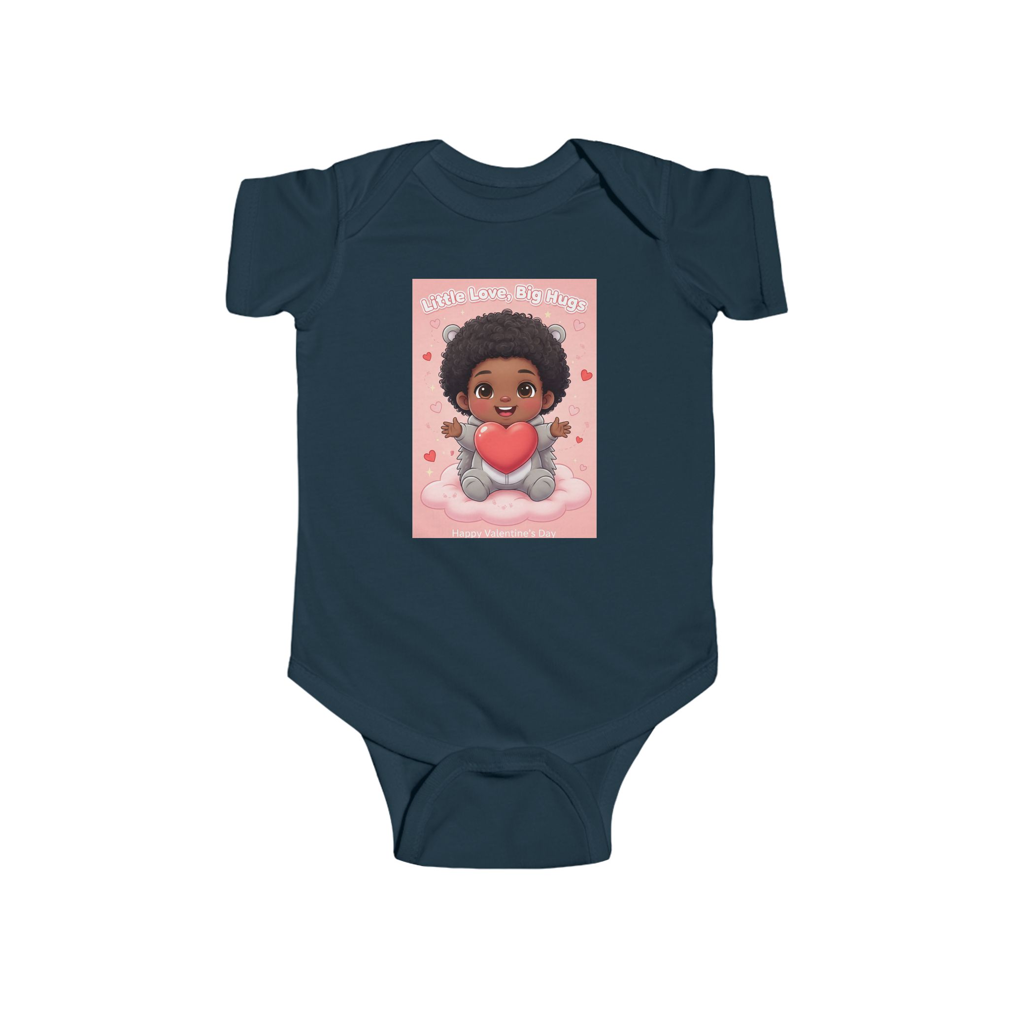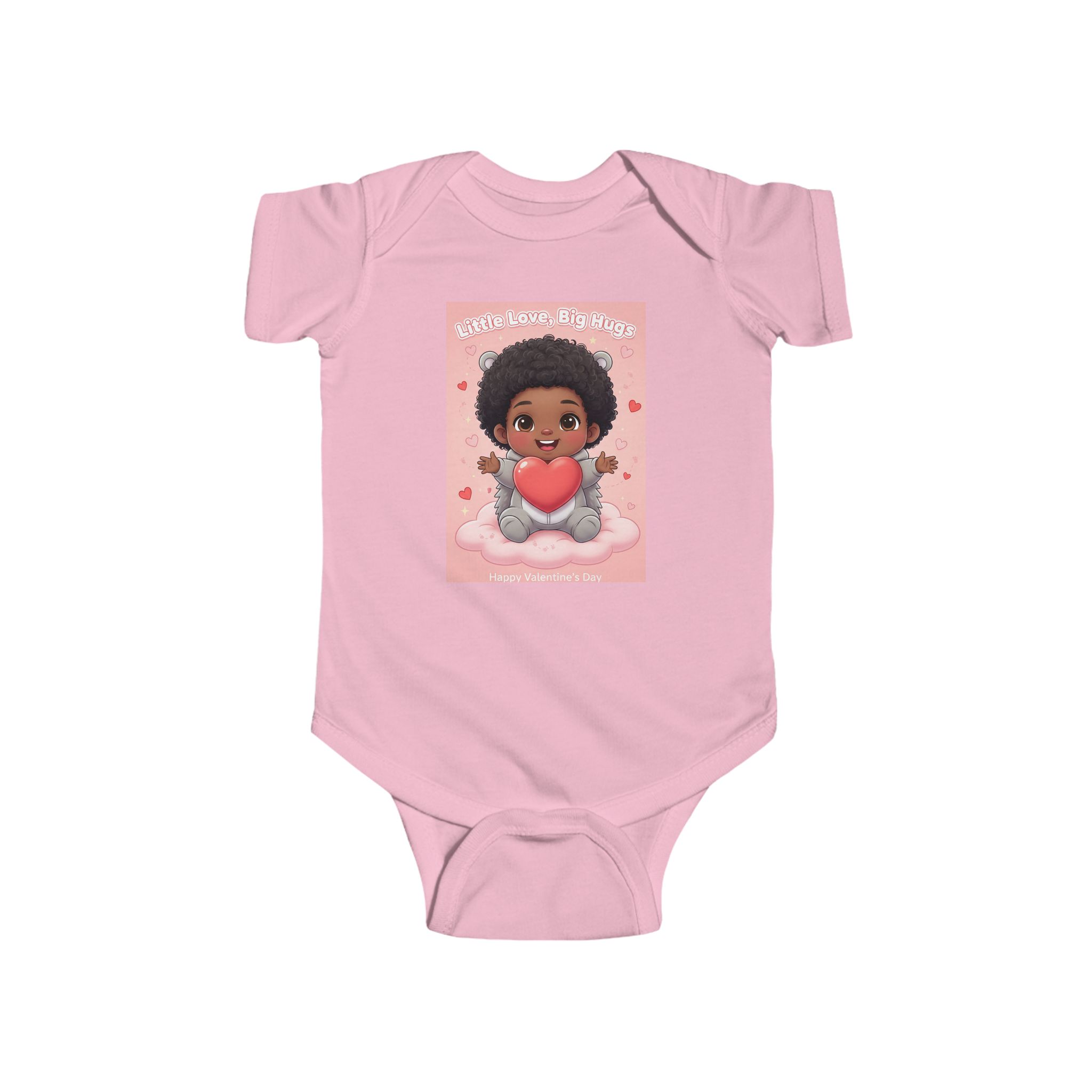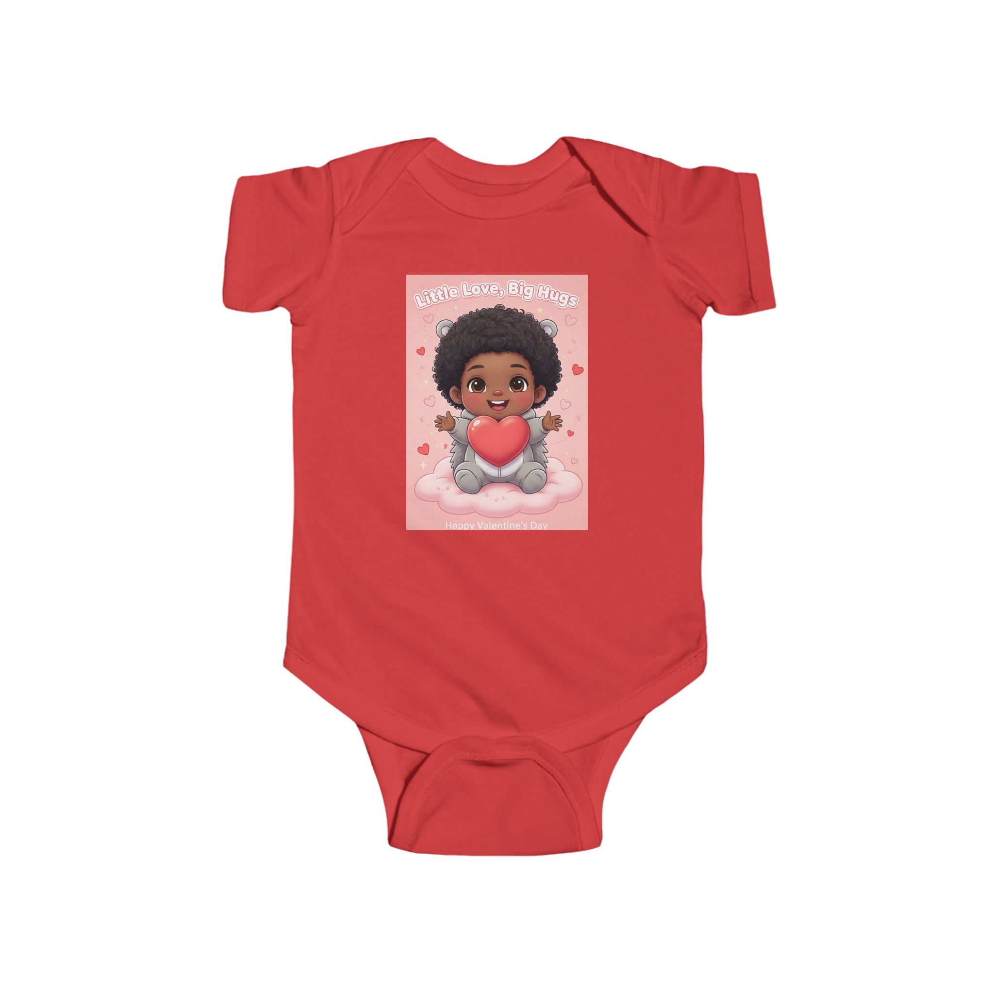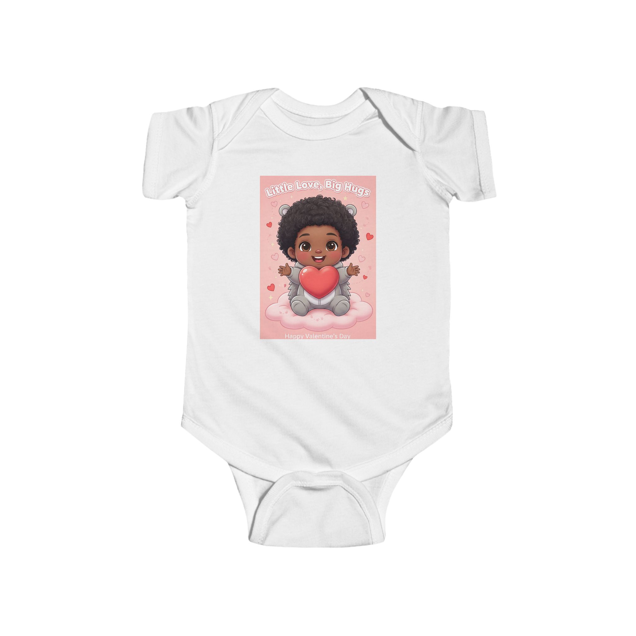 Soft and sweet — this infant bodysuit wraps tiny days in gentle comfort and playful charm. The lightweight, smooth jersey feels soft against delicate skin while the ribbed neck and side seams keep its shape through wiggles and washes. A cheerful print of a smiling baby holding a heart brings warmth to nap time and family photos. Snaps at the cross closure make diaper changes quick and quiet, and the tear-away label keeps things itch-free for sensitive skin. Made from combed ringspun cotton with REACH certification, it’s crafted to be worn, loved, and passed along.