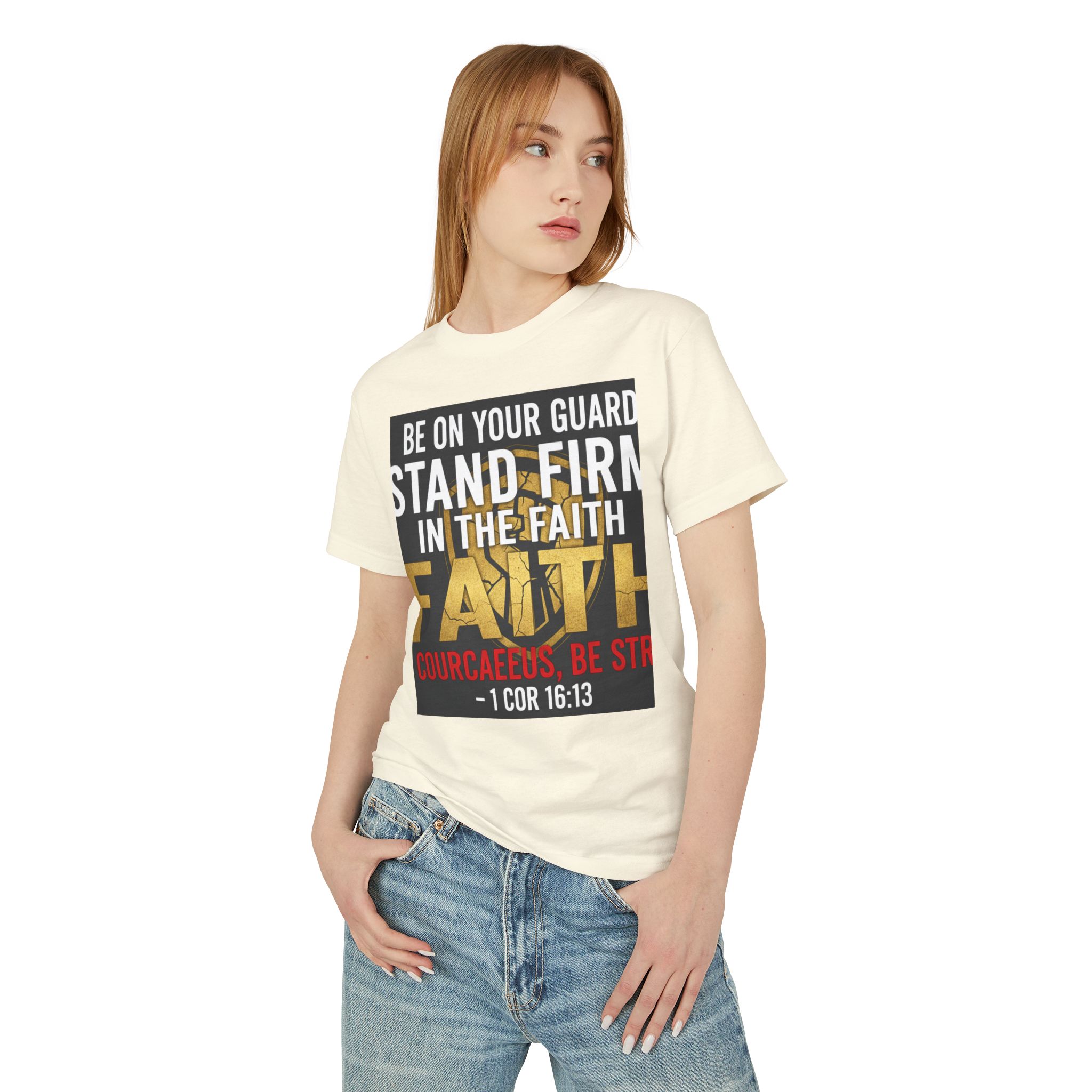 Faith T-Shirt — “Be On Your Guard, Stand Firm in the Faith” Christian Scripture Tee (1 Cor 16:13)