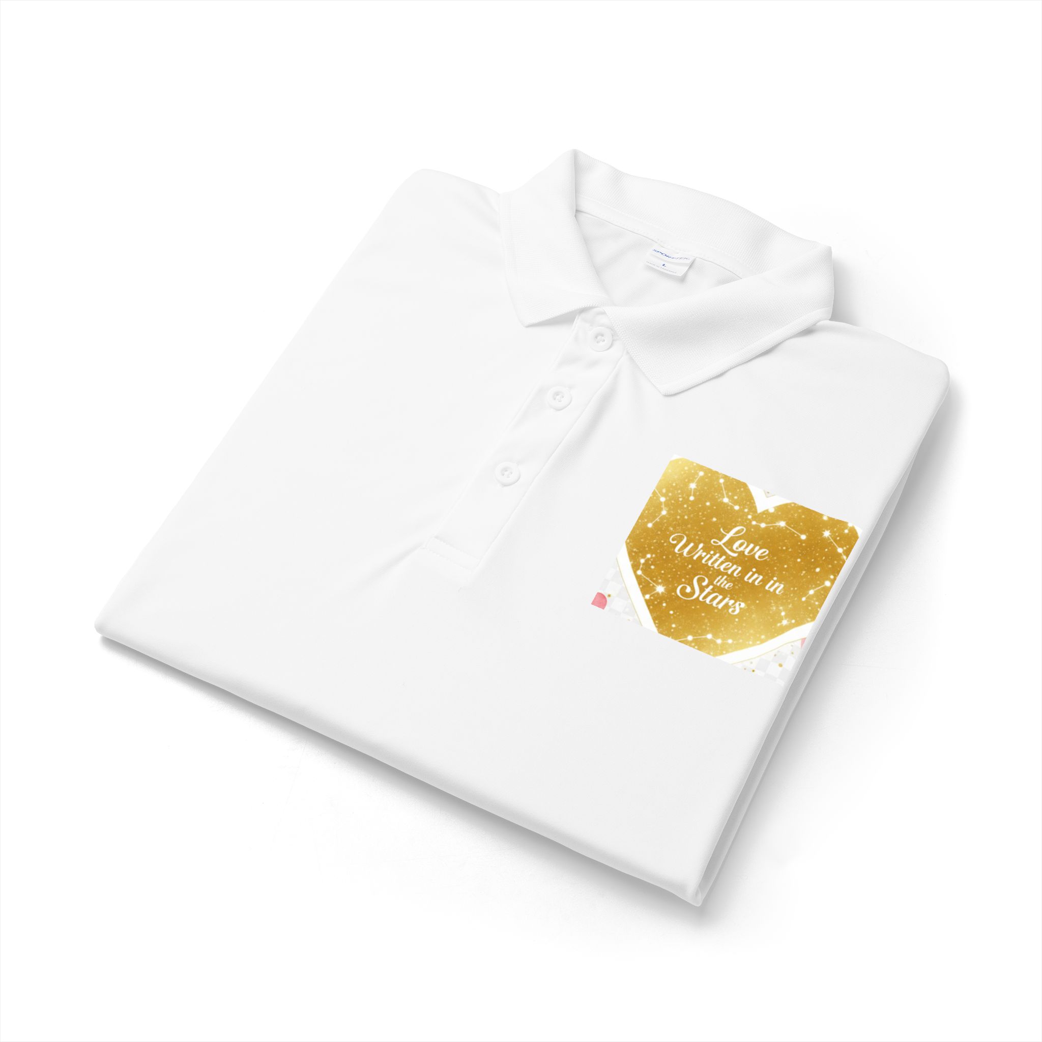 A lightweight, performance polo that blends athletic function with subtle, heartfelt style. This breathable polyester shirt moves moisture away and keeps its shape wash after wash, while the flat knit collar and three-button placket keep the silhouette clean and familiar. A small, gold-toned heart pocket print adds a quiet, warm touch—an understated accent that reads like a personal note over the chest. Comfortable for long days, quick-drying for active use, and finished with tear-away tags for scratch-free wear.