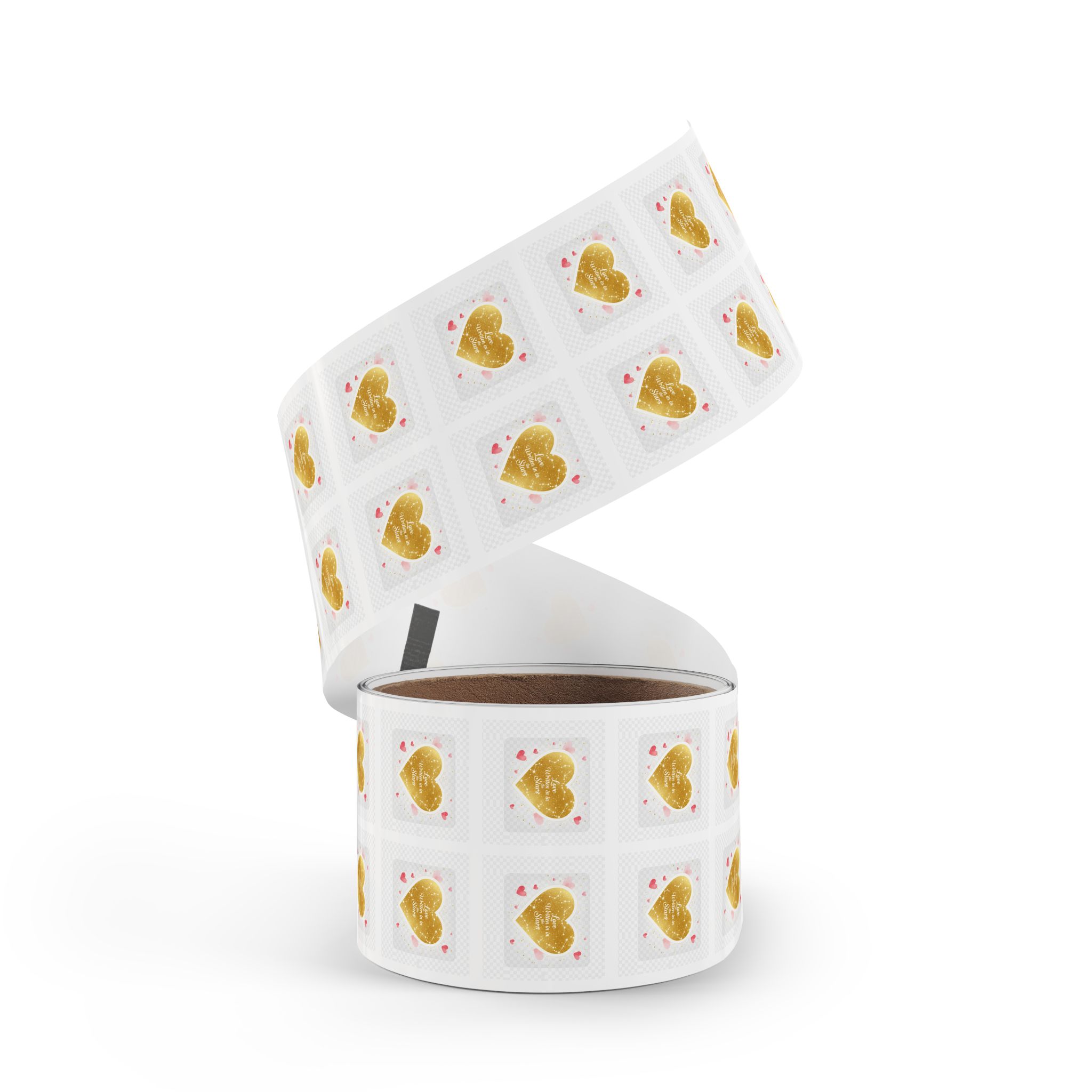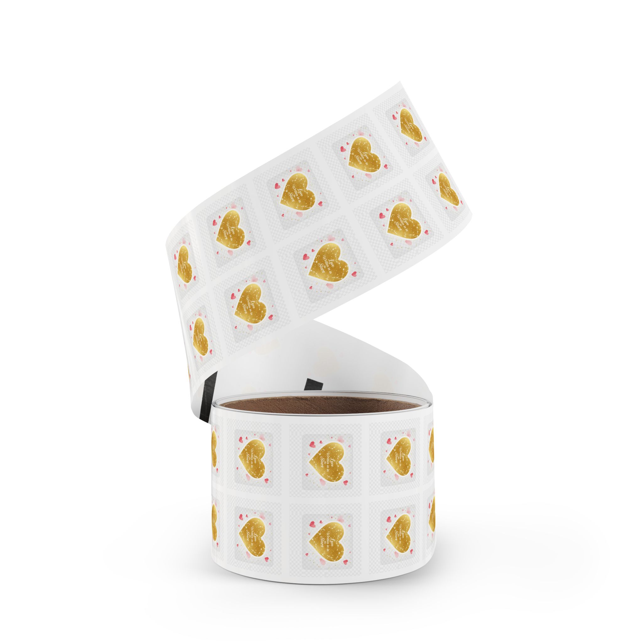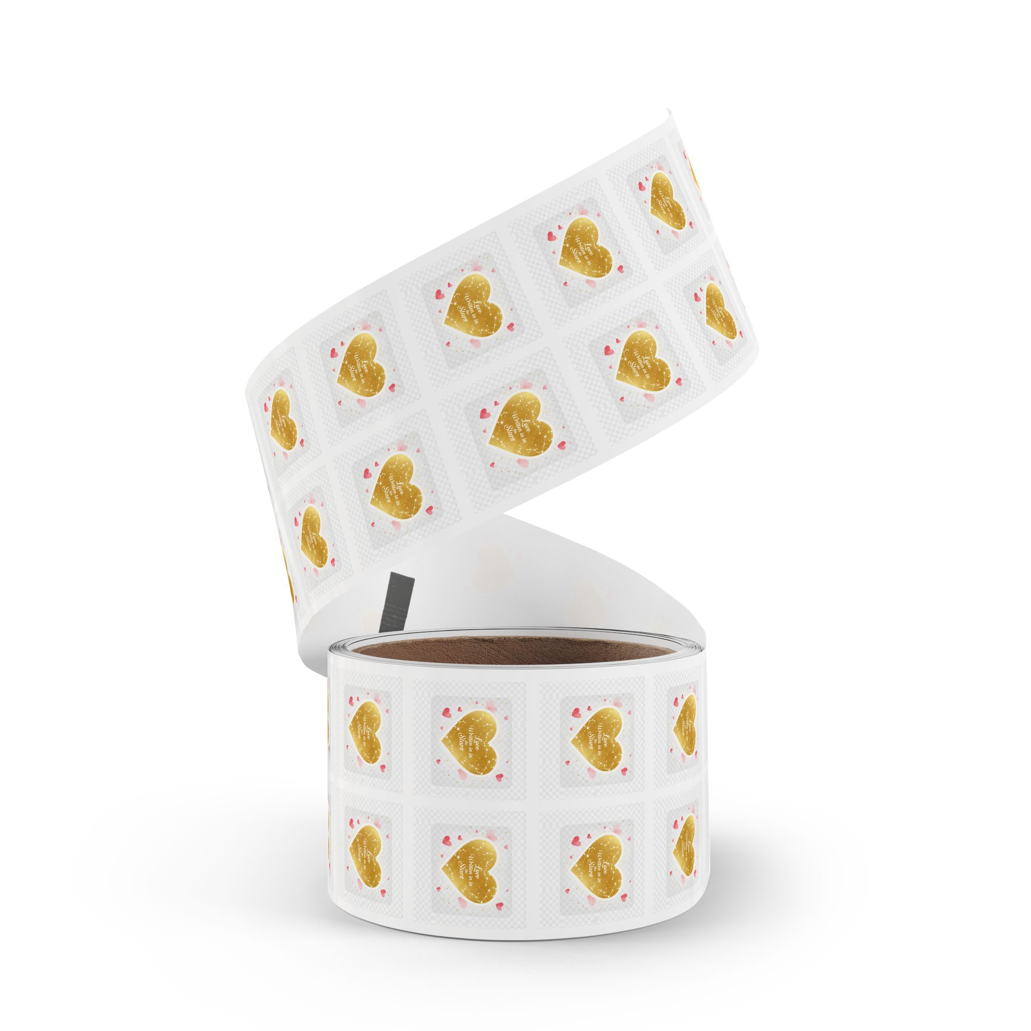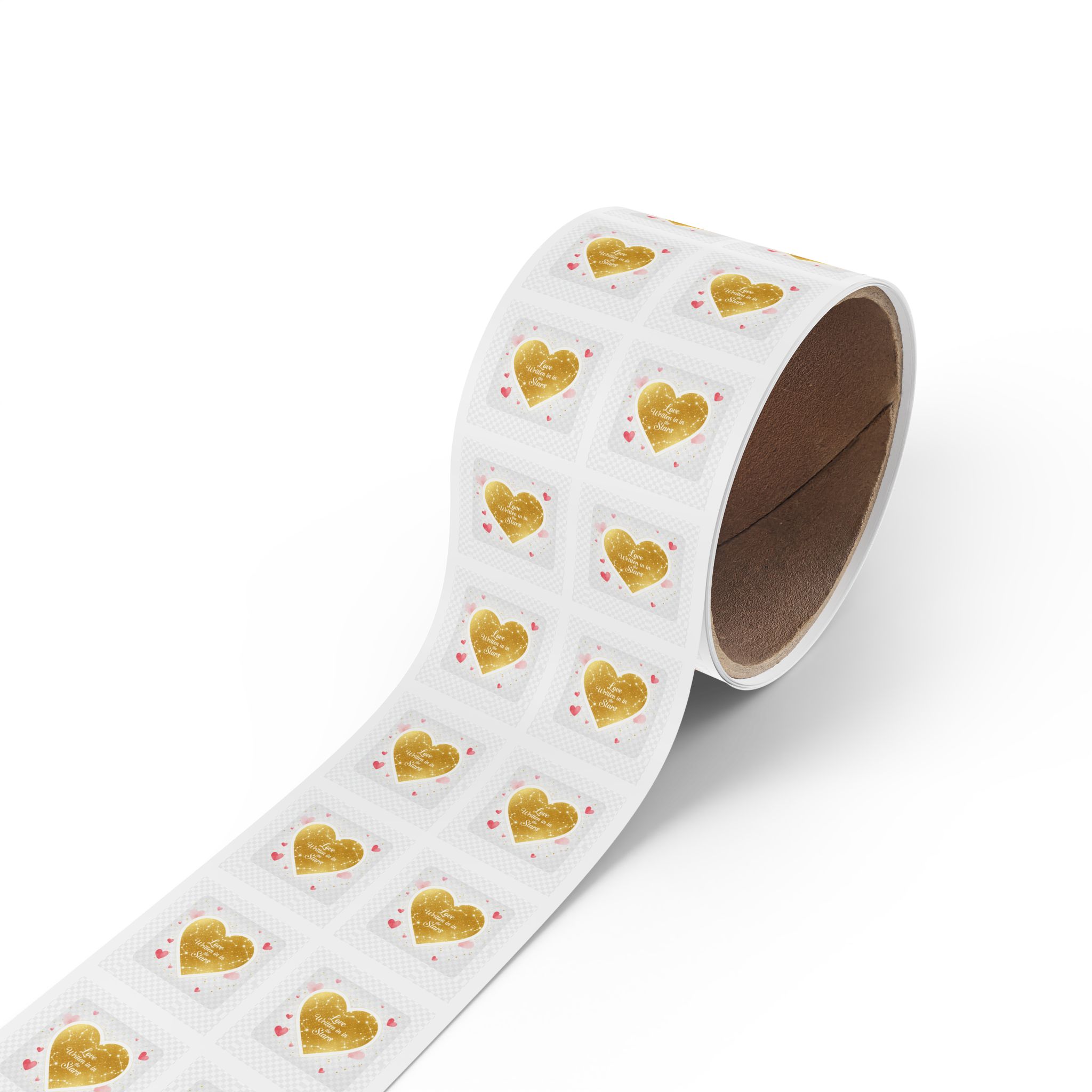 These square sticker label rolls bring a little lift to packaging, mailers, and small gifts. Each roll is printed on glossy BOPP so colors stay bright and edges resist scuffs, water, and heat. The compact sizes sit neatly on a dispenser or in a craft drawer — reach for them when you want a neat, polished seal for orders, party favors, or handmade products. The warm gold heart design shown adds a handcrafted, celebratory touch that reads as thoughtful and joyful on envelopes, treat bags, jars, and product boxes. Assembled in the USA from globally sourced parts, the rolls come in 50, 100, or 250-count options so you can stock what fits your workflow.