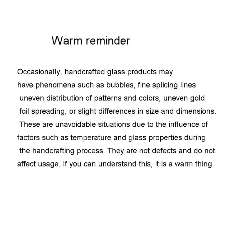 For glass products, avoid sudden temperature changes as they can easily cause the glass to break.
