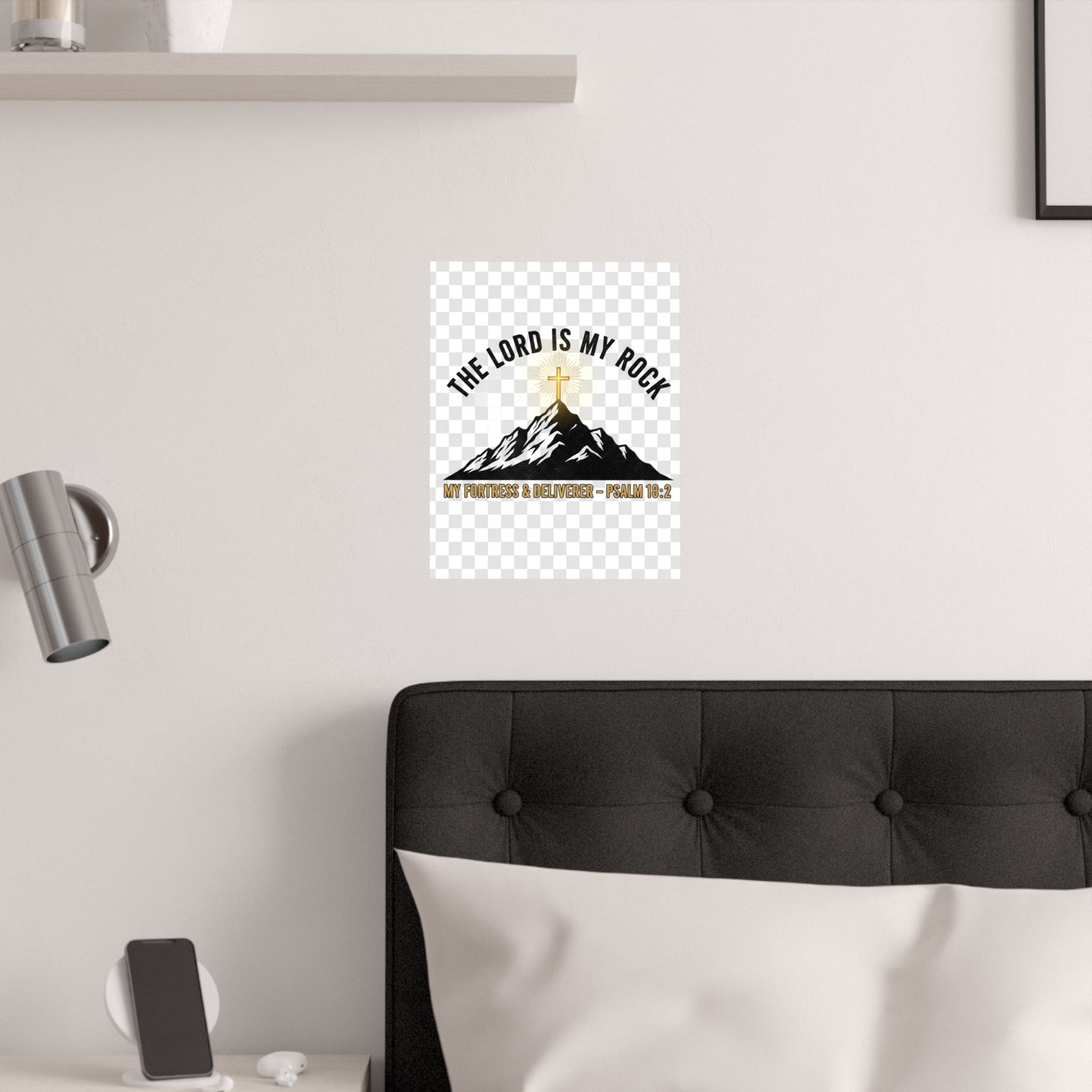 This satin poster brings a quiet, steady confidence into any room. A rugged mountain silhouette anchors the design while a glowing cross crowns the peak, with the words “The Lord Is My Rock” arcing above and Psalm 18:2 below. The low-glare, museum-grade satin surface renders deep blacks and warm gold highlights with pigment inks that keep the message bold without feeling flashy. Hang it in a reading nook, entryway, or prayer corner to create a calm, reverent moment each time you pass by — a visual reminder of strength and shelter that blends easily with rustic, cottage, or modern faith-centered décor.
